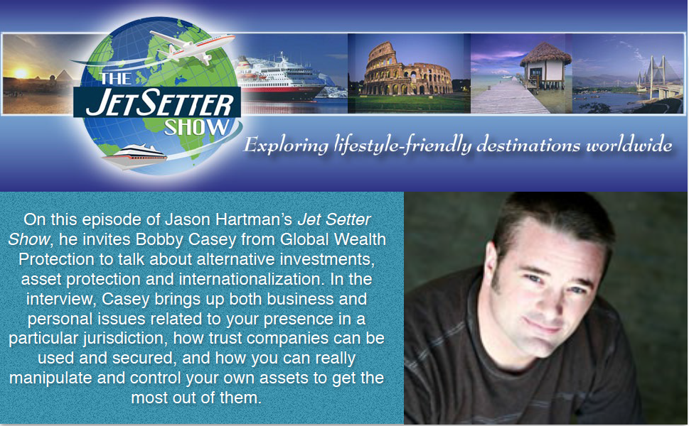 On this episode of Jason Hartman’s JetSetter Show, he invites Bobby Casey from Global Wealth Protection to talk about alternative investments, asset protection and internationalization. In the interview, Casey brings up both business and personal issues related to your presence in a particular jurisdiction, how trust companies can be used and secured, and how you can really manipulate and control your own assets to get the most out of them